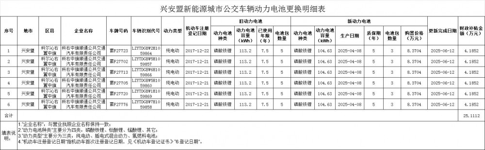兴安盟交通运输局关于2025年新能源公交车动力电池更新补贴情况的公示