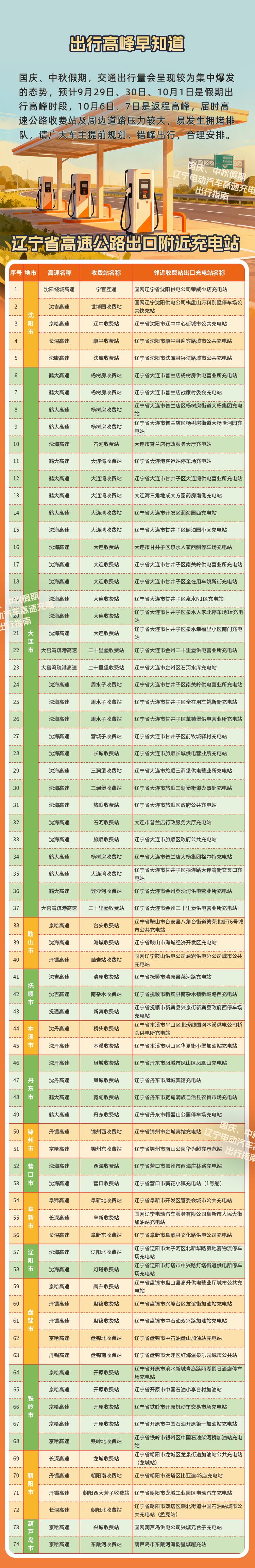 辽宁省高速公路出口附近充电站详情公布,请广大车主提前规划,错峰出行,合理安排。