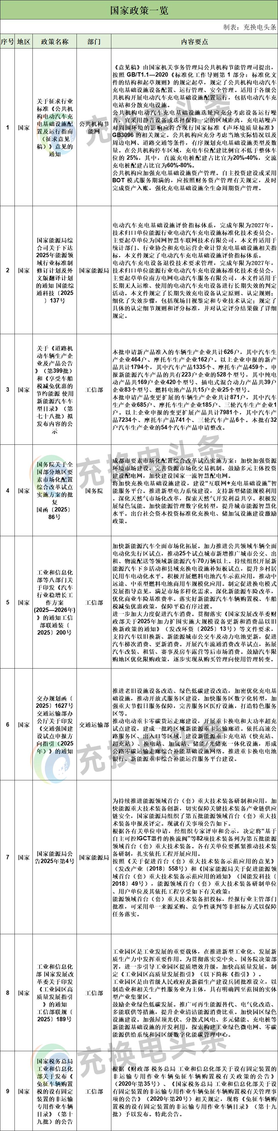 据充换电头条统计,2025年9月份国家及地方共发布充换电相关政策40条。其中,国家出台政策9条,地方出台政策31条。