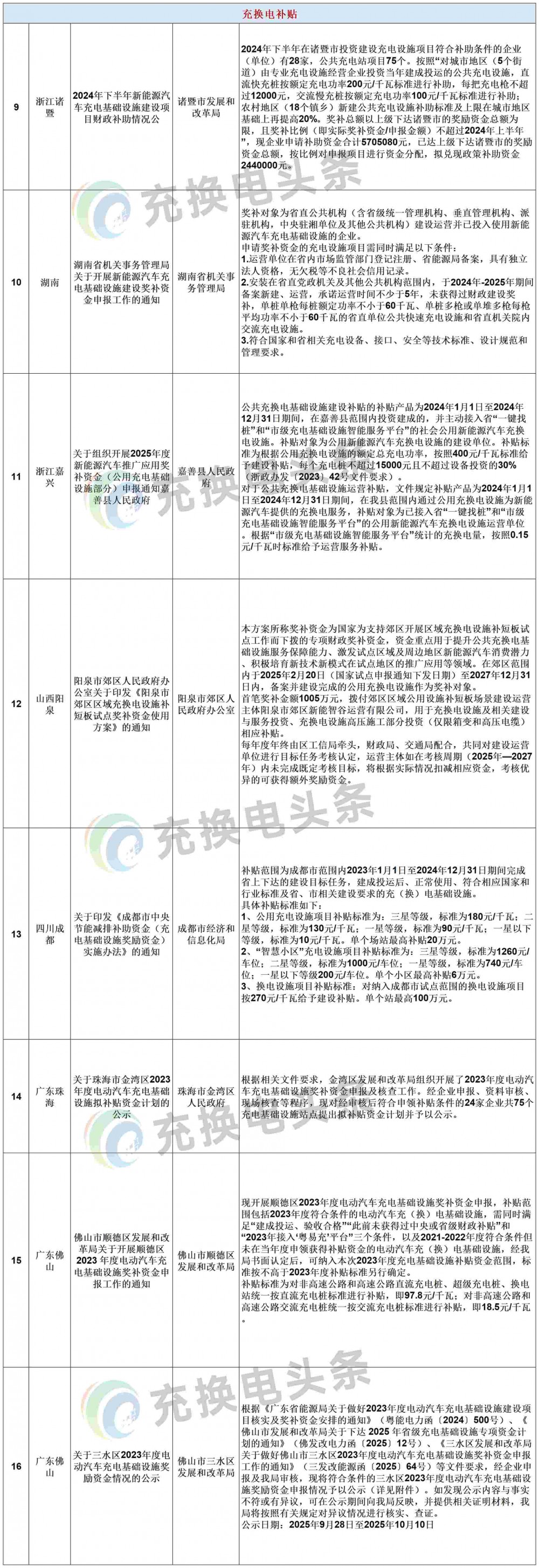 充换电补贴:浙江诸暨、浙江嘉兴、湖南、山西阳泉、四川成都、广东珠海、广东佛山等地共发布8条。