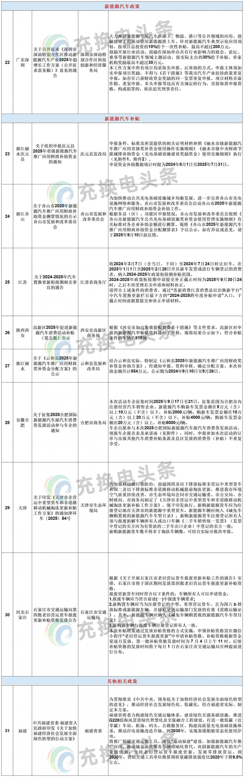 9月份,河南、青海、湖南、吉林、重庆、江苏、天津、福建、甘肃兰州、河北沧州、广东阳江、河南郑州、云南西双版纳、浙江诸暨、浙江嘉兴、浙江丽水、浙江舟山、陕西西安、安徽合肥、河北石家庄、山西阳泉、四川成都、广东珠海、广东佛山、广东广州、广东深圳等26省市(区)发布充换电相关政策。