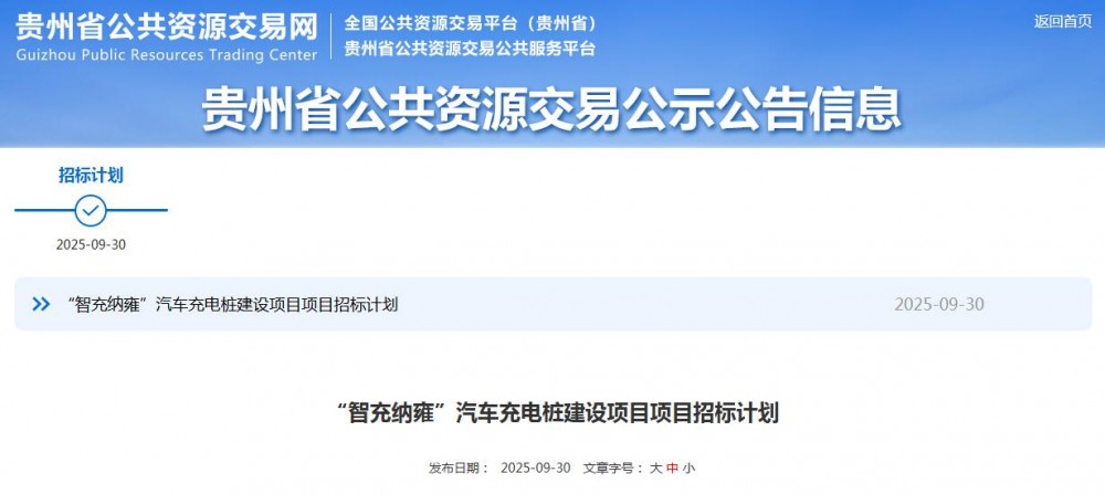 充换电头条获悉,近日,贵州省公共资源交易网发布了“智充纳雍”汽车充电桩建设项目项目招标计划。