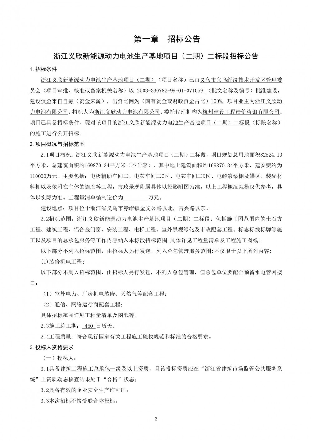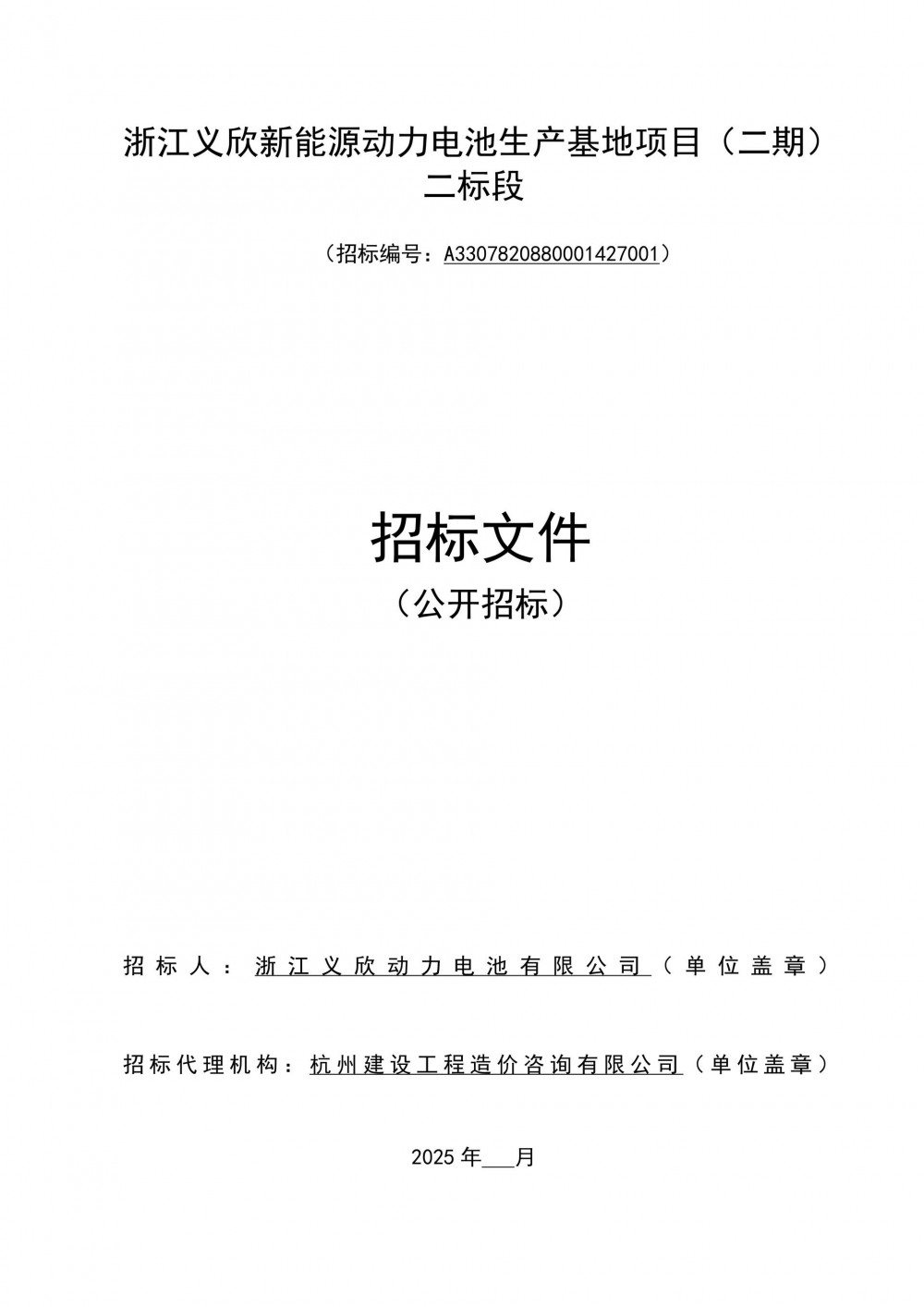 浙江义欣新能源动力电池生产基地项目(二期)二标段[A3307820880001427]