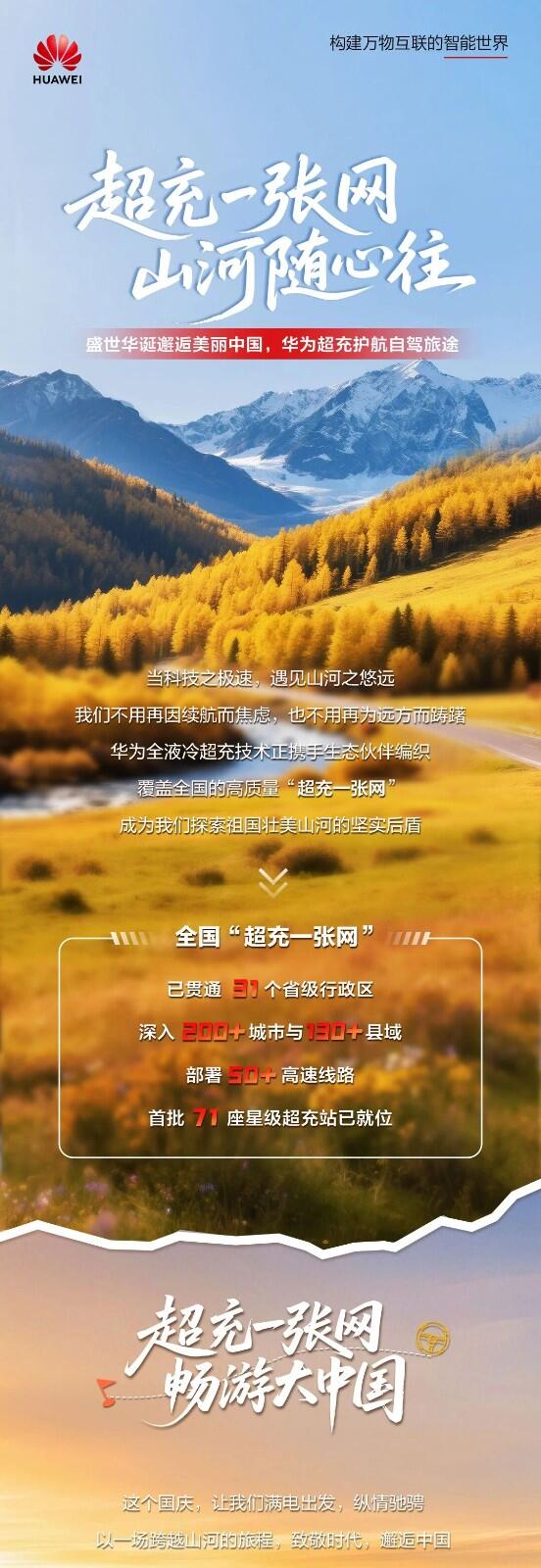 构建万物互联的智能世界,HUAWEI超充一张网山河随心往,盛世华诞邂逅美丽中国,华为超充护航自驾旅途