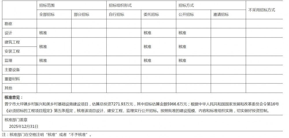 附件:广东省工程招标核准意见表