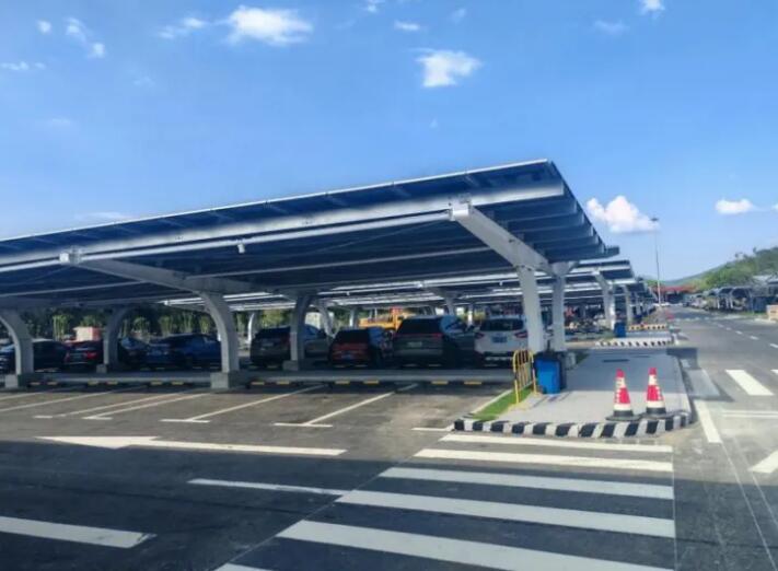 桐庐服务区光储充一体化项目深度整合光伏、储能与充电系统,构建智慧能源微网。南、北区光伏总装机容量达3096.09kWp,年均发电量预计可达300万度,相当于年减少碳排放约2312吨。其中,南区光伏装机容量2705.49kWp,光伏系统已于去年11月实现并网发电,月均发电量约21.86万度,并配备200kW/430kWh储能系统;北区光伏装机容量390.6kWp,待并网发电后将与南区光伏系统协同运行,进一步提升清洁能源自发自用比例。
